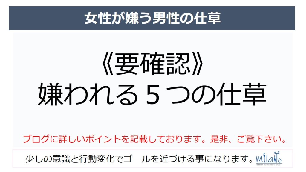 とくに「女性が嫌がる癖」を無意識にしてしまっていると、それだけで嫌われてしまうもの。